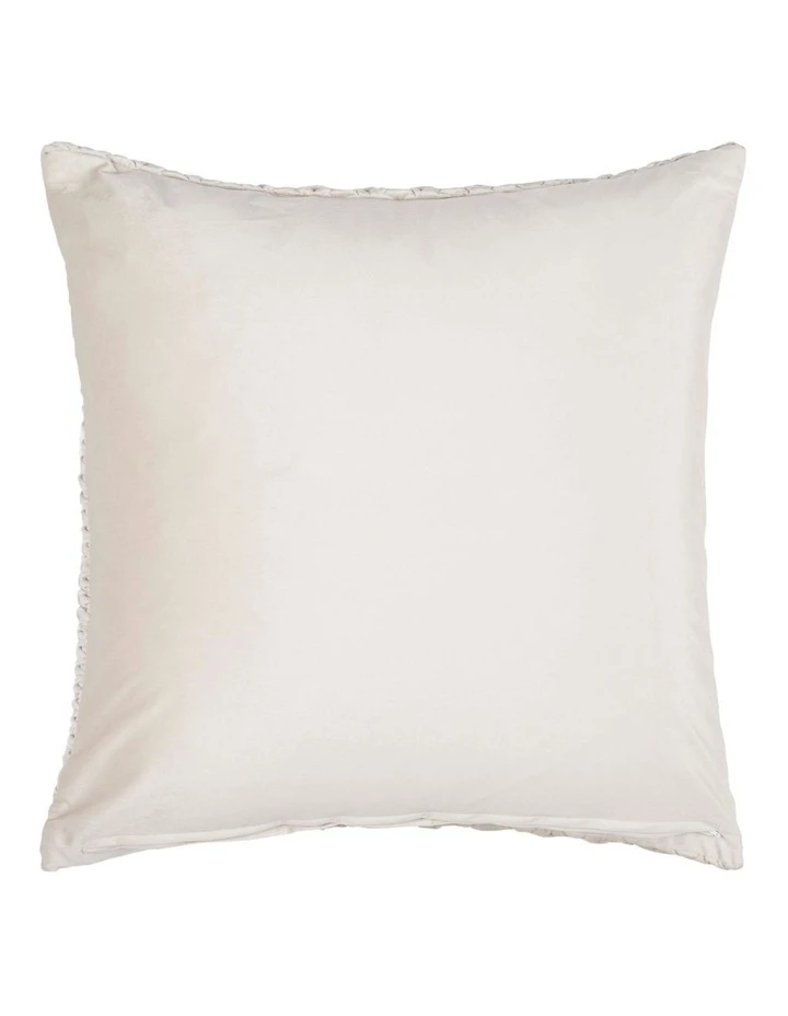 Loxton accessories combine pattern with tactile softness. Plush velvet is gathered and embroidered into raised stripes, reversing to smooth velvet for visual and textural contrast. The range comprises a European pillowcase, square cushion and a long cushion, in three classic colours – navy, platinum and champagne.