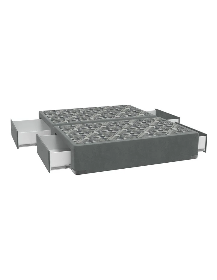 Sterling Velvet Base with Four Drawers comes with Headboard Bracket Attachment. All wood construction using a composite of Kiln dried Australian plantation pine and engineered plywood. Each frame is meticulously hand assembled with fully glued joints to ensure it stands the test of time. Traditional upholstery techniques are applied by our team of qualified tradesmen, delivering a hand tailored piece of furniture of exceptional quality and timeless appeal.