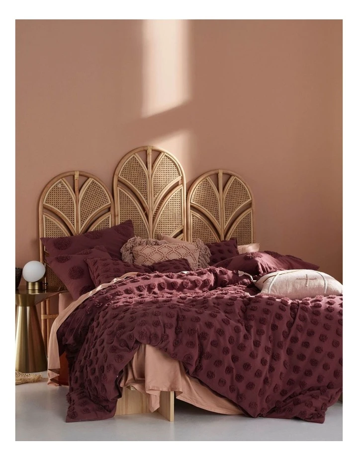 Perfectly timeless in a sublime rhubarb hue, this quilt cover set complete with fluffy spots is a bedroom essential. Haze, which is made from tufted cotton chenille, is soft and tactile with marvellous vintage appeal. The entire set looks phenomenal paired with nudes and creams and adorned with its coordinating tufted European pillowcases and cushions a wonderful aesthetic for adults and kids alike.
