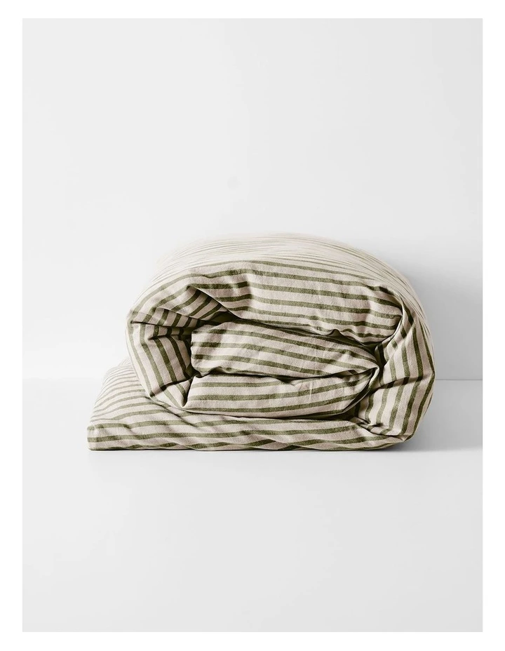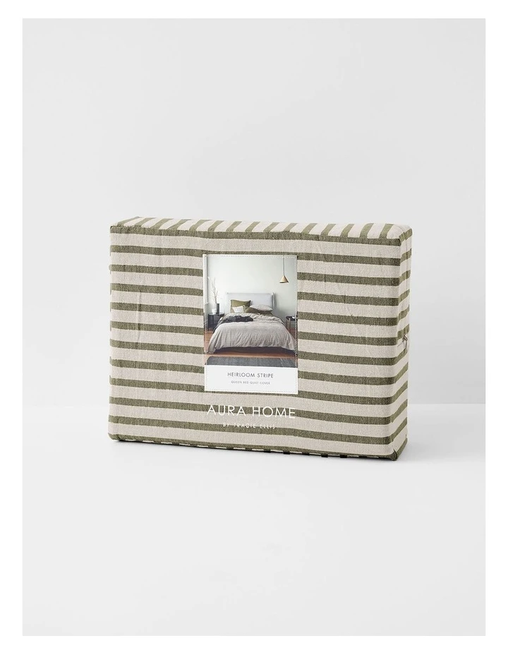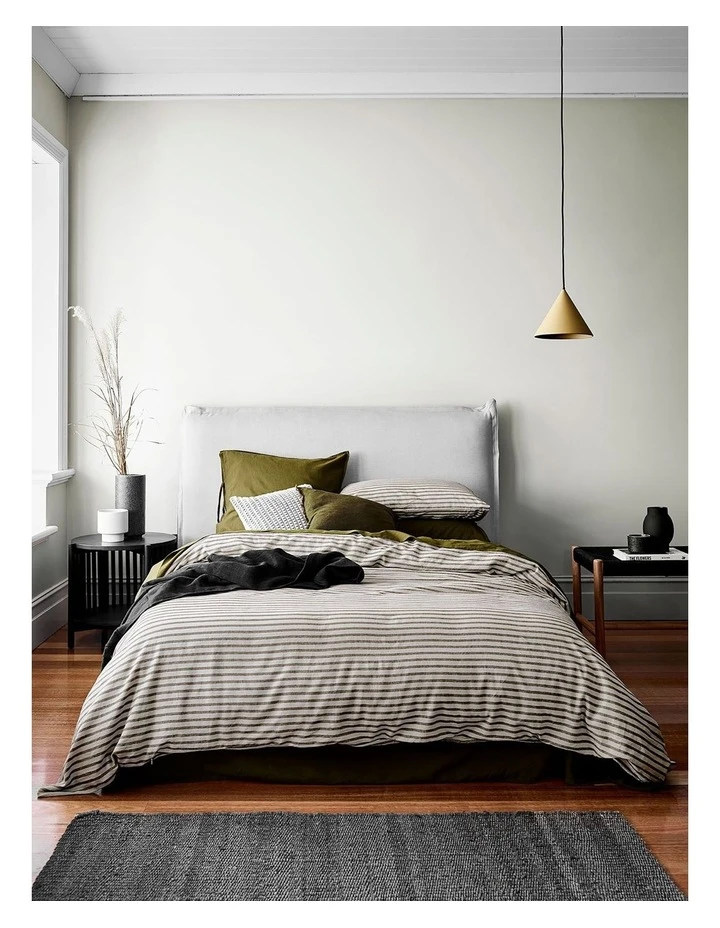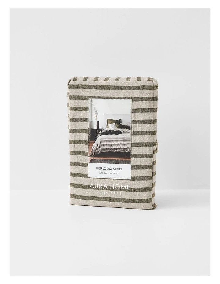 The Heirloom Stripe Bedlinen collection in Khaki by Aura Home has been woven from French flax grown sustainably in the coastal regions of France and blended with sustainably sourced cotton, which means less impact on the environment and creates beautifully soft bedlinen.