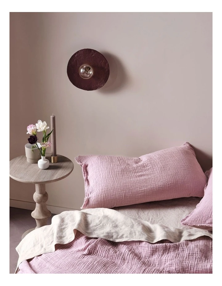 Layer this cosy aesthetic with woven accessories for texture and a pair of its coordinating European pillowcases.