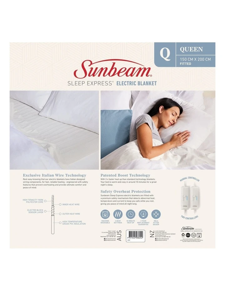 - Safety Overheat Protection: Sunbeam Sleep Express Electric Blankets are fitted with a premium safety mechanism that detects abnormal heat, temperature and current to keep you safe while you rest, giving you peace of mind all night long.