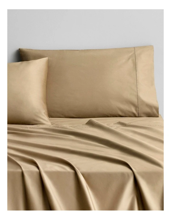 Create the new luxe look with the Garrow sheet collection from Sheridan. The newest addition to Sheridan’s deluxe bedding range,Garrow is crafted in an indulgent 1200 thread count with a soft sateen finish. Garrow is finished with a contrast stitch border, highlighting the quality craftmanship in the details. – 100% cotton sateen – 1200 thread count- Matching pillowcases & accessories sold seperately