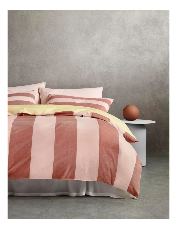 Create impact in your space with the Wyatt quilt cover set from Sheridan. Wide width stripes in bold colour combinations instantly catch your eye, while the pillowcase plays with scale. Crafted from 100% cotton with a contrasting plain dye reverse, it lends itself to a variety of styling options. – 100% cotton yarn dye stripe – Wide width stripes in contrasting colours – Contrasting plain dye reverse – Bold look – Set includes quilt cover and matching pillowcase/s