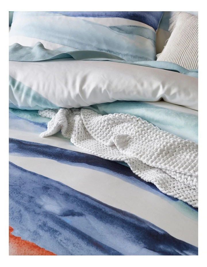 Freshen up your bedroom look this season with our Bass Strait quilt cover set. Constructed from 100% Tencel this quilt cover offers a more sustainable and ecological choice. With absorbency qualities outmatching cotton and a hand feel softer than silk, this quilt cover is perfect for the hot sleeper or for the warmer months. Featuring a placement print hand-painted by our in house design team and inspired by our great coastal landscape, this is a great way to add a touch of luxury and relaxation to your room.
