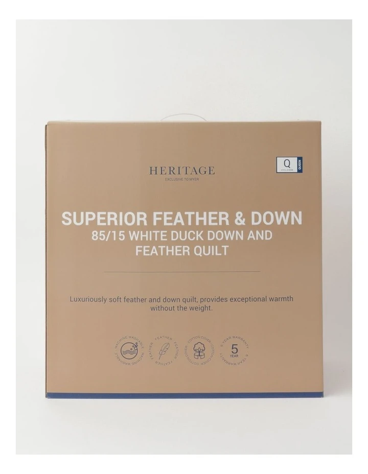 Our Heritage 85/15 White Duck Down and Feather Quilt is luxuriously soft with a feather and down fill. This quilt offers exceptional warmth without the weight and is filled with a minimum of 85% white duck down and feather and finished with a natural cotton japara cover. With a naturally breathable fibre this quilt has superior resilience and longevity. The Heritage 85/15 White Duck Down and Feather range is treated for protection against bacteria and dust mites to maintain fabric freshness, suitable for asthma and allergy sufferers.