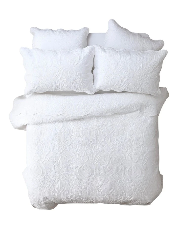 Sophisticated and elegant, this Gabriella embroidered cotton coverlet quilt & shams with scalloped border elevates your bedroom decor. Gabriella coverlet can be used as a layering piece or one its own.