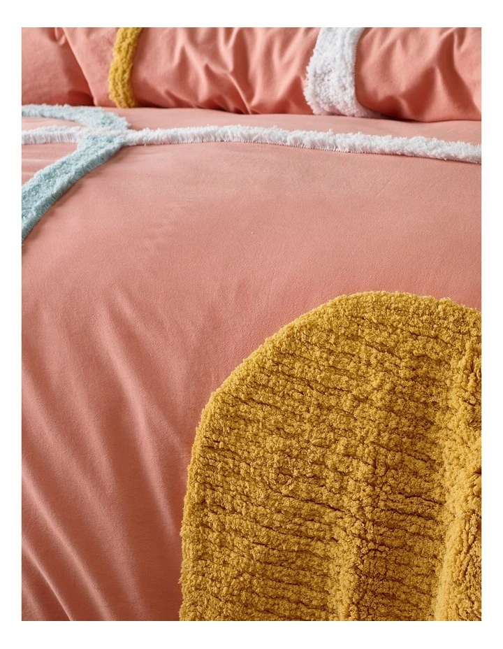 Create soft and playful texture in your bedroom this season with our Dumes quilt cover set. Constructed from 100% cotton, and featuring chenille tufting in summery pastel colours this is the perfect update to your summer bedding.