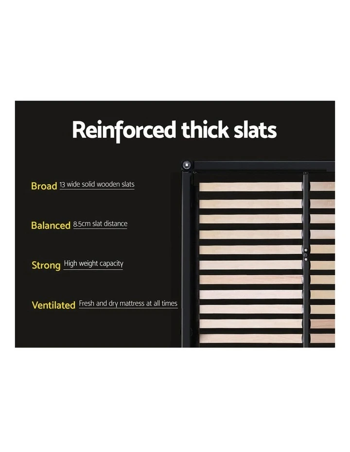 Constructed with a sturdy steel frame that’s reinforced with metal bars and heavy-duty connectors, the Avio Bed Frame is also padded with high density foam and upholstered in breathable non-woven premium linen fabric for a soft and comfortable touch. The Bed Frame features a wooden arched slat base that helps to distribute weight evenly across the frame and a centre support strut to provide added stability to the overall structure.
