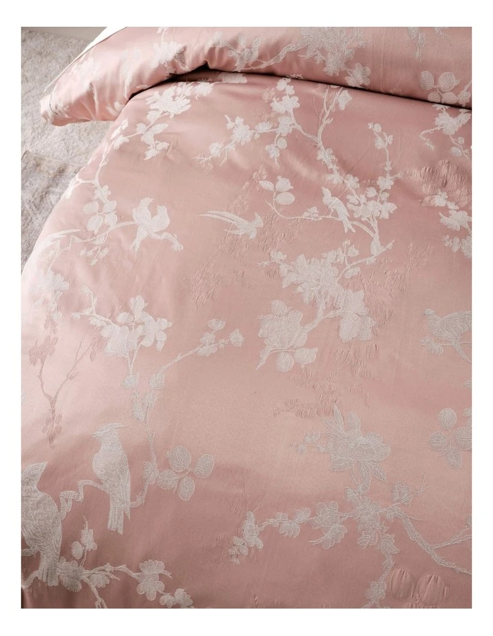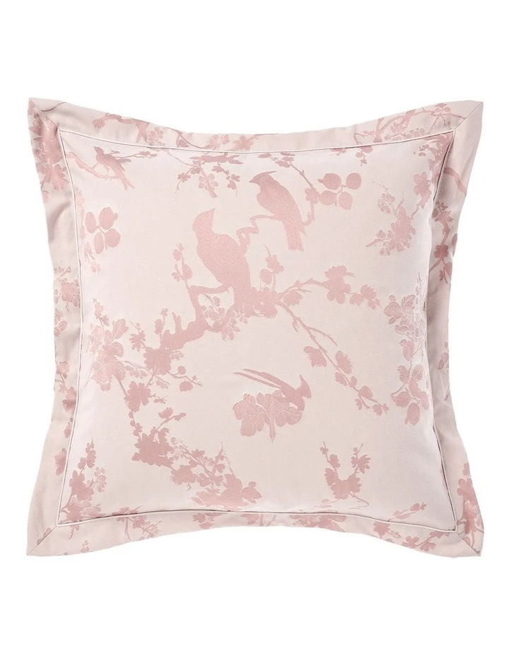 Every inch stunning, Sonoya is a chinoiserie-style jacquard in breathtaking hues of blush and ivory. Taking inspiration from antique French wall coverings, this set is reimagined into a gorgeous, silhouette-style design of exotic birds and cherry blossom trees. Embrace this lavish, chinois style by adorning it with its coordinating European pillowcases and cushion.