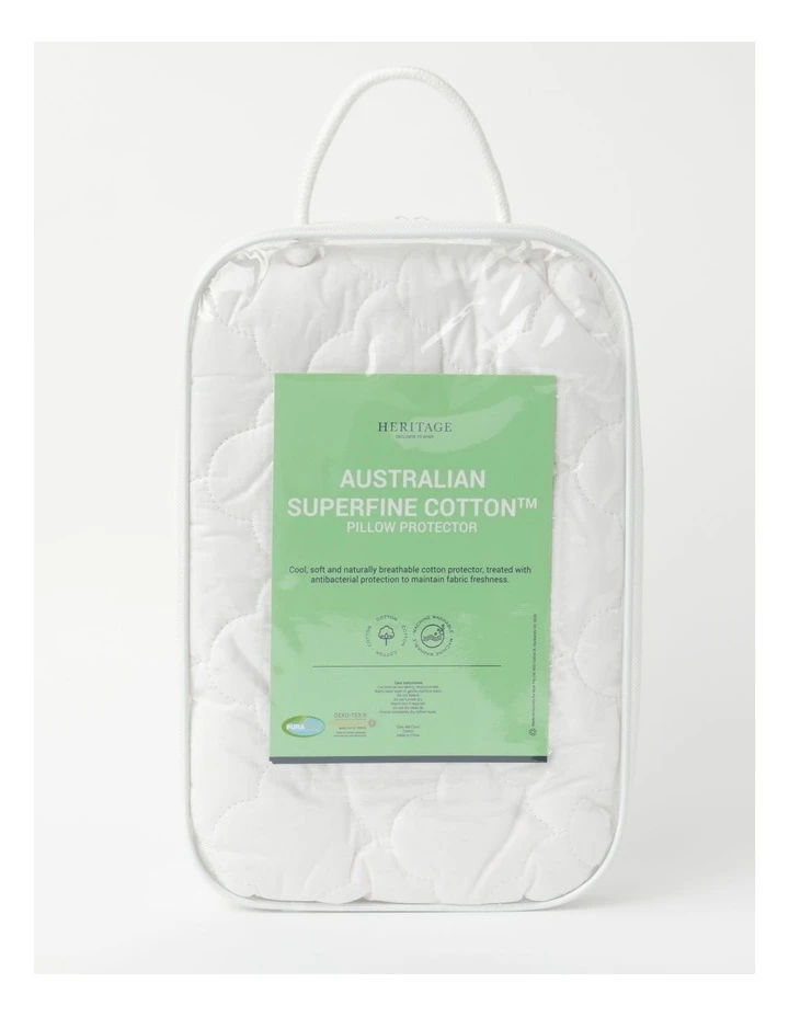 The Heritage Australian Superfine Cotton Quilt Pillow Protector is cool and soft and naturally breathable. This protector is perfect for hot sleepers, and helps to protect and prolong the life of your pillow. Treated for protection against bacteria and dust mites to maintain fabric freshness this protector is suitable for asthma and allergy sufferers.