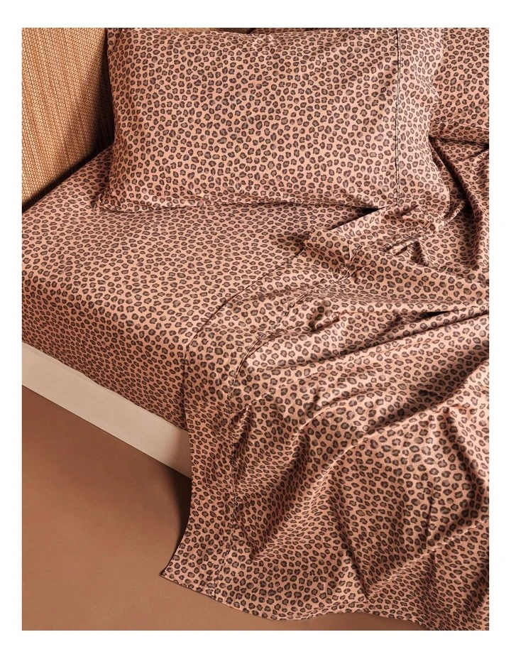 A playful take on the classic leopard print, our Goldie sheet set in brandy is made from a 250 thread washed cotton percale.