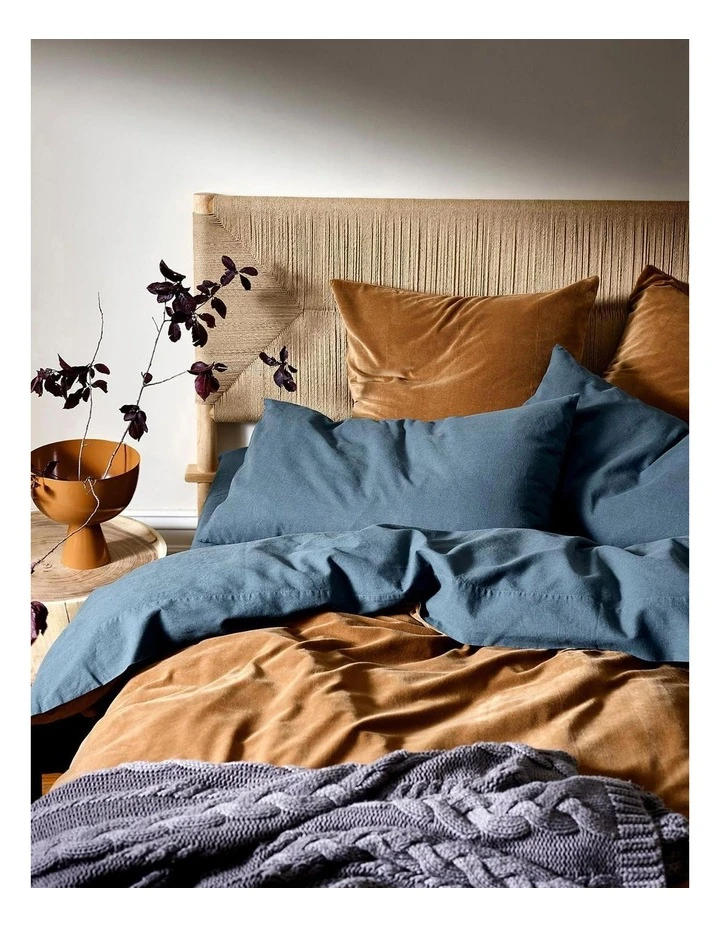 Woven in pure cotton velvet, and reversing to pure cotton percale. Packed in a matching Velvet fabric bag, available in Quilt covers, Standard Pillowcases and European Pillowcases finished with beautiful matt gold zippers. All pillowcases are sold individually.