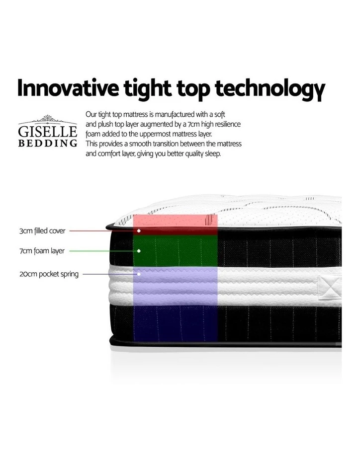 Covered with premium Belgium knitted fabric for unsurpassed softness and body heat dissipation, the Giselle Bedding Firm Mattress is also highly breathable and dust mite and mould-resistant with no necessity to turn over the mattress unlike other inferior alternatives. Handy side handles enables you to position the mattress easily.