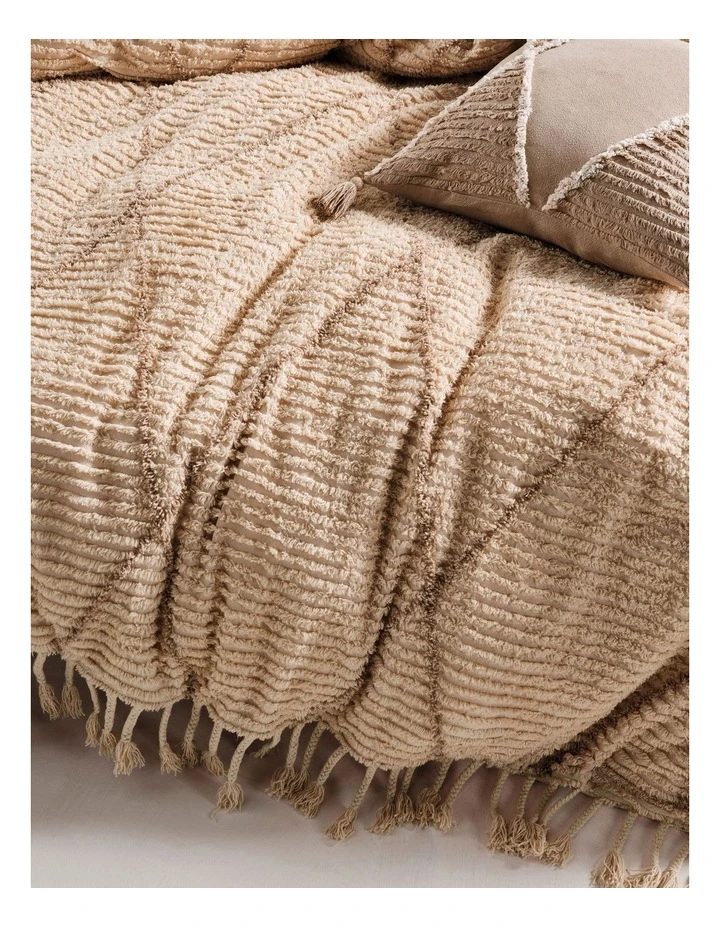 Warm, textural and made from tufted cotton, Asha features stylish diamond patterned details in taupe across a homely sand hue, exuding every inch of retro chalet glamour for your bedroom aesthetic.