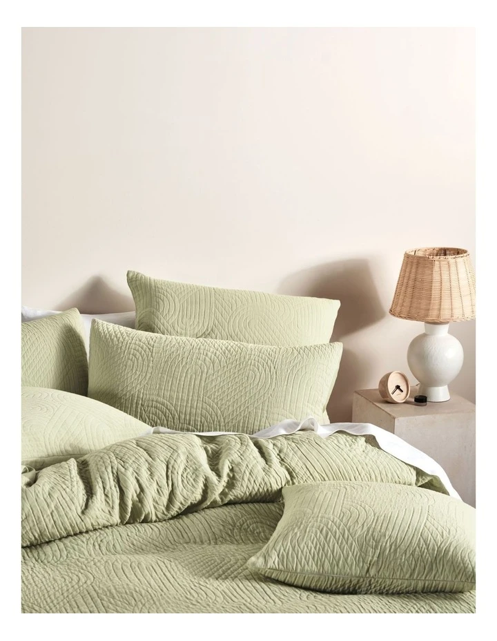This charming and super-cosy wasabi set, which will transform your bedroom into a sanctuary, looks sublime indulged with its matching European pillowcases and cushion along with soft, textural accessories for a cocoon-like setting.