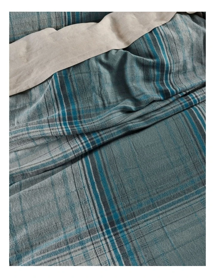 Yarn-dyed, this set looks best styled with a pair of matching European pillowcases as well as more woven accessories for a retro-inspired finish.
