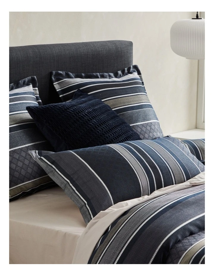 Stripes have never been smarter. Detroit Navy is a stunning bedroom story, featuring classic stripes with a medley of patterns woven in tonal mineral shades and neutral ink. Dress with Detroit’s matching European pillowcases to heighten the look.