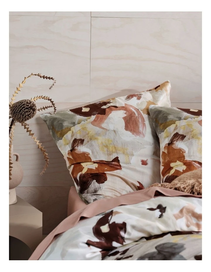 A hand painted and gestural floral print on cotton sateen, Symphony draws on neutral inspired hues for a beautifully refined aesthetic. Complete this set to make it even more dashing with its coordinating European pillowcases and cushion.
