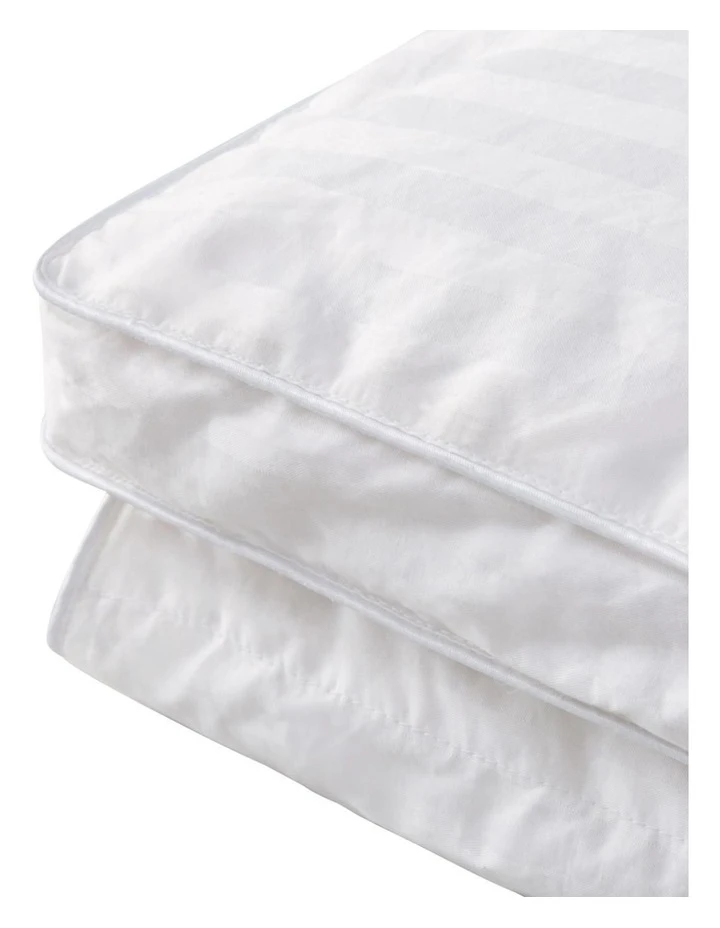 Sleep in supreme comfort with the SHERIDAN Deluxe 50/50 Goose Feather & Down Quilt. This new soft and luxurious light weight cotton cover is perfect for premium feather and down fill. Its box cassette stitch design helps keep fill in place and even warmth distribution. A gusseted edge with satin piping provides additional loft. The cover is constructed from fine cotton with satin stripe jacquard, 360 thread count. The white goose down and feather fill of this quilt has been pre-washed a minimum of 8 times to ensure the purity and quality of this product.
