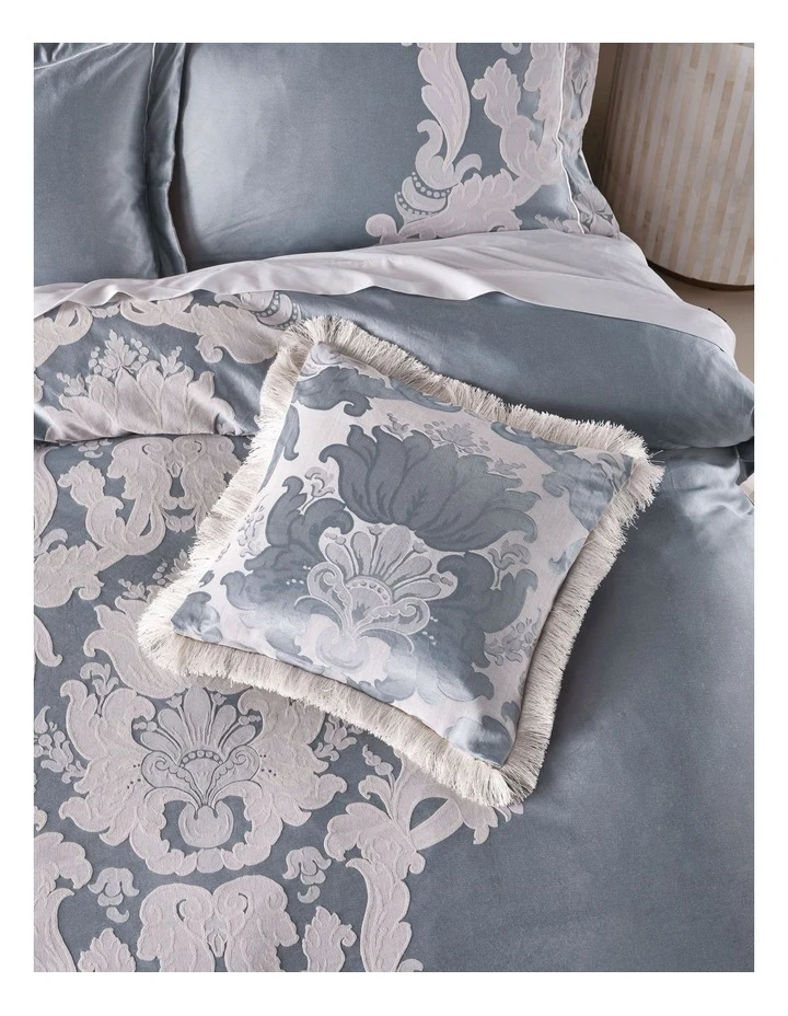 An aesthetic that is both timeless and modish, this fringed cushion looks superb styled with its coordinating quilt cover set and European pillowcases.
