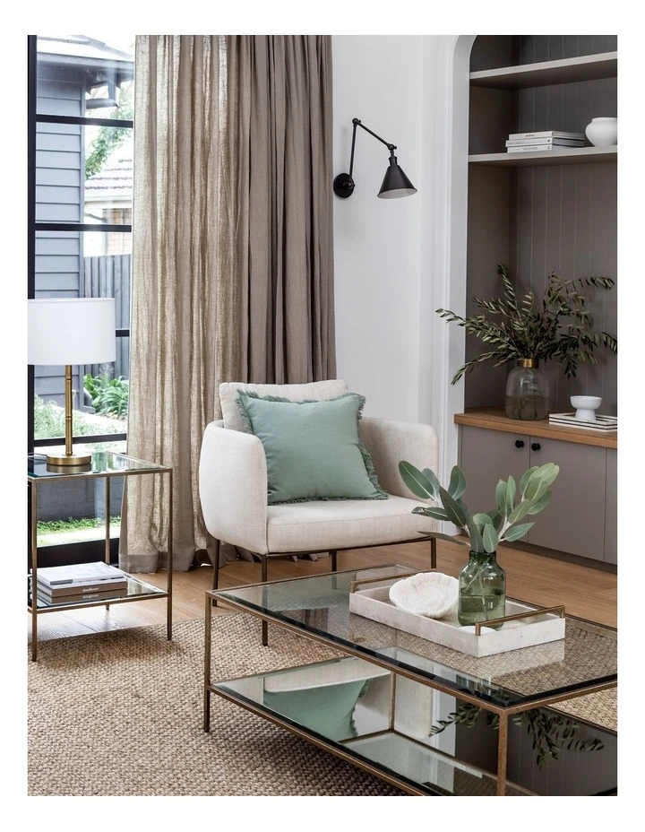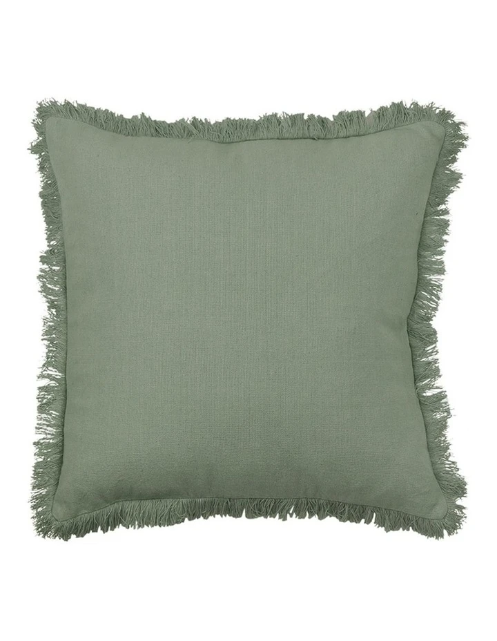Chambray cushion with self fringes and zip 10cm from base of cushion.