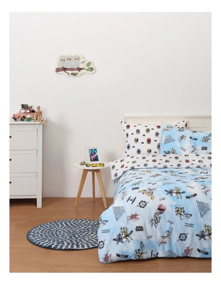 You’ll be dreaming away to another galaxy with this amazing quilt cover set from the world of Star Wars. With an exclusive design featuring the classic Star Wars icons, this 100% Cotton quilt cover set is easy care and perfect for Star Wars fans young and old. Available in Single, Double and Queen bed sizes.