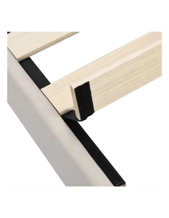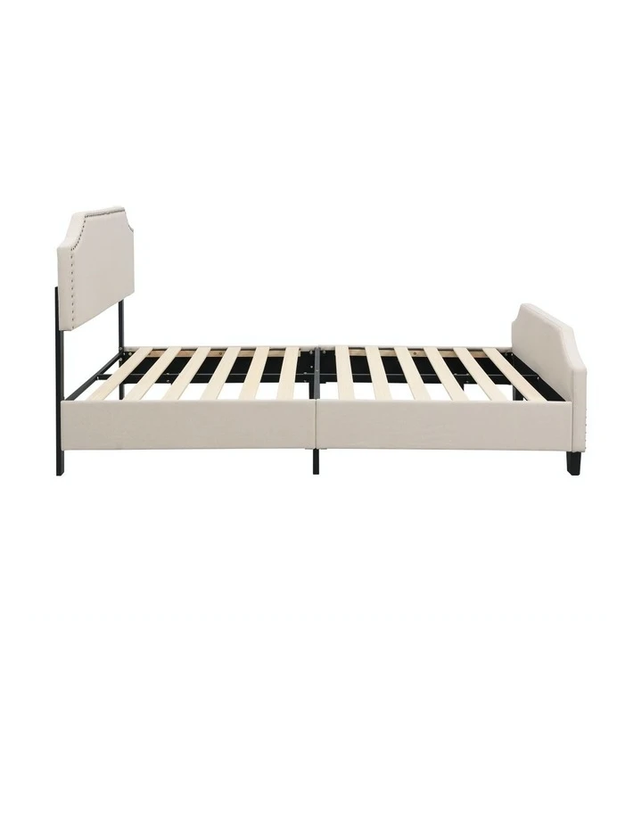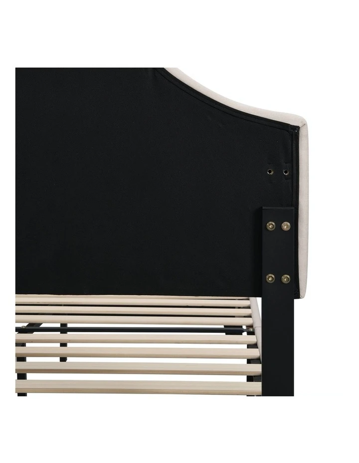 FeaturesHeadboard could adjust three different height, 10cm for each adjustmentUpholstered with premium linen fabricBreathable non-woven fabricPlush nail-style bedheadPadded with high-density foamSturdy steel frameStrong centre support strutWooden arched slat baseHeavy-duty metal connectorsEasy assemblyReinforced construction with metal barsFloor protectors