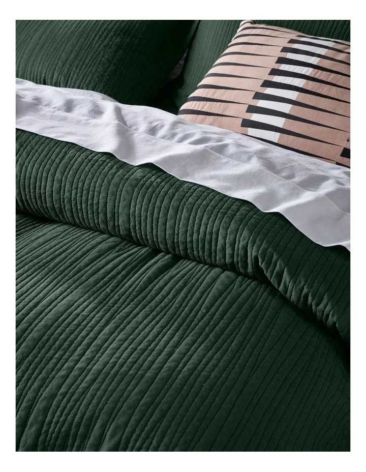 Add a touch of chic to your bedroom with the Allamanda quilt cover set. Designed in an opulent deep emerald, this 180TC cotton quilt cover has a quilted finish for added texture, and a 5cm self-flange.
