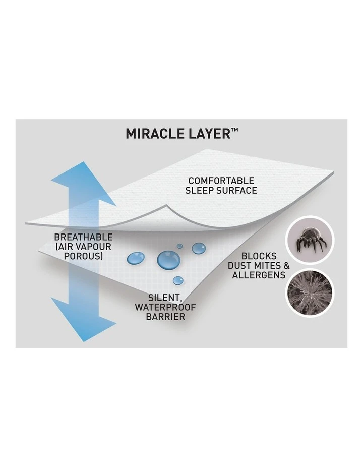 Waterproof, yet breathable, absorbent, soft and comfortable. It is completely waterproof, thanks to the silent and breathable Miracle Layer and absorbs up to 1L on a queen bed.