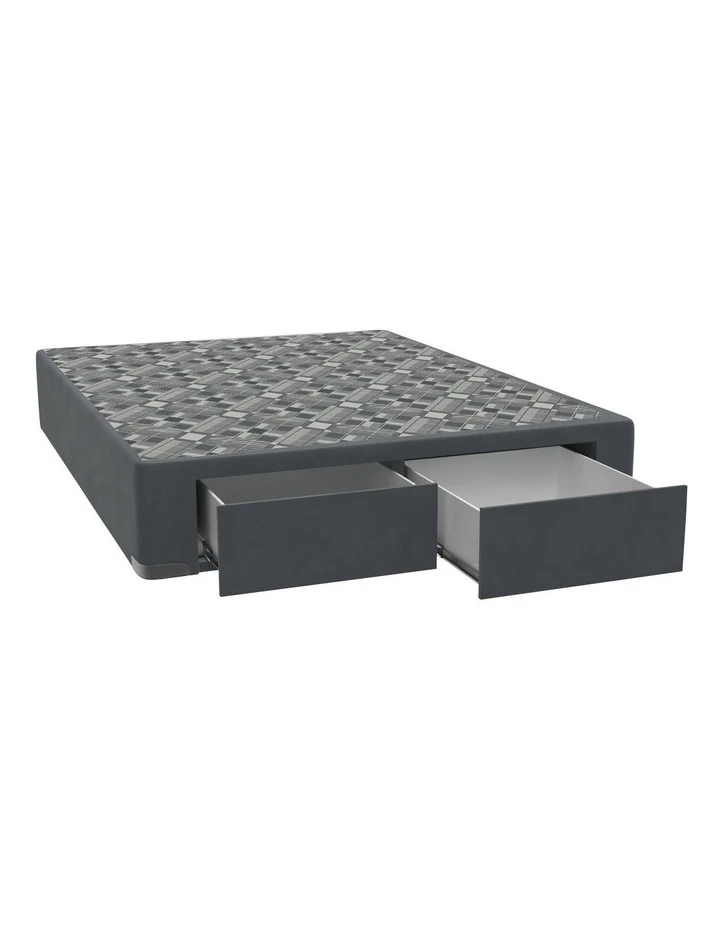 Lead Velvet Base with Foot End Drawers comes with Headboard Bracket Attachment. All wood construction using a composite of Kiln dried Australian plantation pine and engineered plywood. Each frame is meticulously hand assembled with fully glued joints to ensure it stands the test of time. Traditional upholstery techniques are applied by our team of qualified tradesmen, delivering a hand tailored piece of furniture of exceptional quality and timeless appeal.