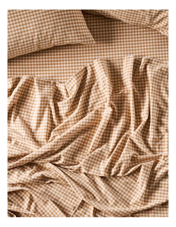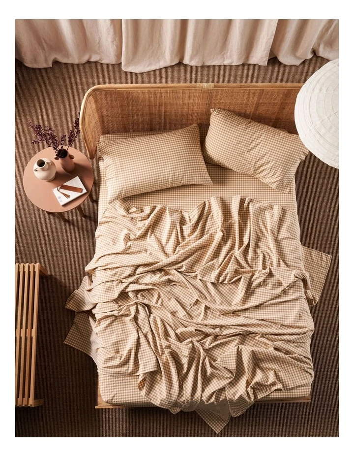 Destined to be a year round favourite, Springsteen’s gingham is made from a beautifully soft washed cotton that’s perfect for those warm nights. The flat sheet and pillowcases are cuffed while the fitted sheet has a 40cm wall, which all looks superb styled with its coordinating quilt cover set and European pillowcases, be it a matching hue or a stylish colour contrast.
