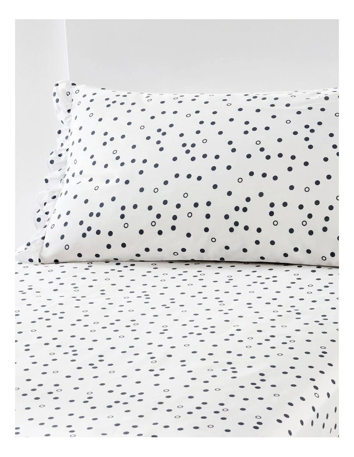 Sheridan’s Spotty Frill fitted sheet set features a polka dot design inspired by floating confetti, and is finished with a cute frill detail on the pillowcases. Crafted in organic cotton, this sheet set is lightweight, soft, and breathable.