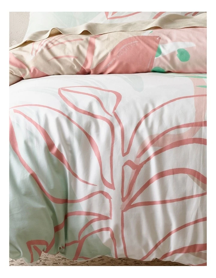 Bring the outdoors in with our Amira printed cotton quilt cover set. With an abstract leaf design, this quilt cover features a textured cotton linen look base and matching euros with corner tassel detail.