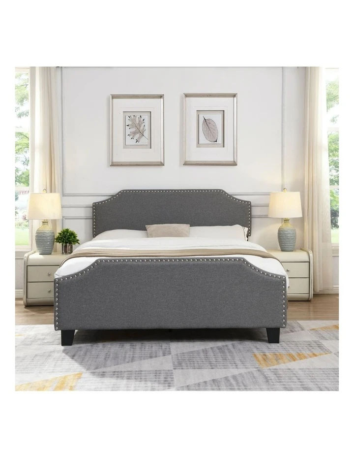FeaturesHeadboard could adjust three different height, 10cm for each adjustmentUpholstered with premium linen fabricBreathable non-woven fabricPlush nail-style bedheadPadded with high-density foamSturdy steel frameStrong centre support strutWooden arched slat baseHeavy-duty metal connectorsEasy assemblyReinforced construction with metal barsFloor protectors