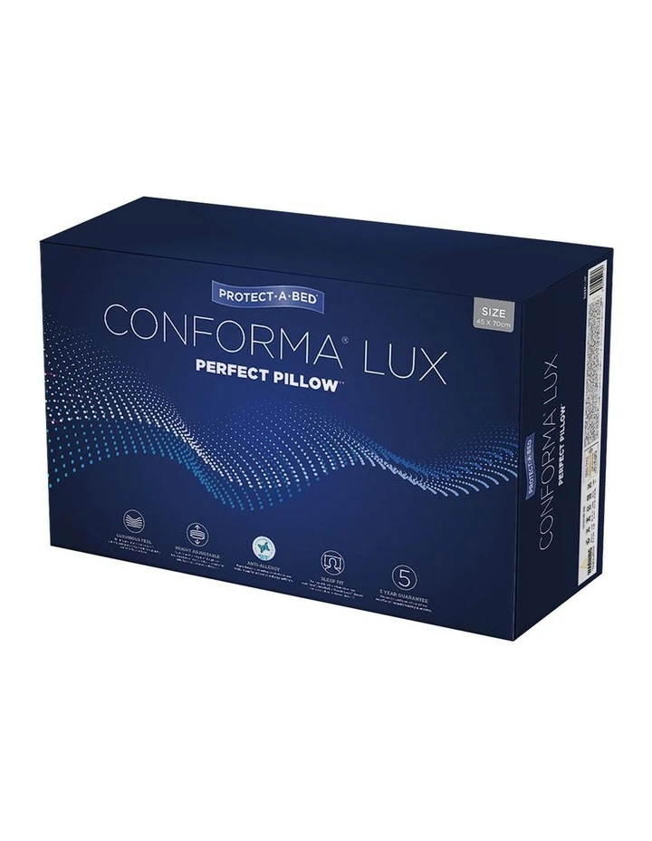 * Conforma Lux Perfect Pillow suitable for stomach, side or back sleepers * Customise the height of the pillow – fully adjustable soft cooling gel infused micro cushions * Thick foam inner cover conforms to your head, designed for added comfort * Suits all comfort levels – soft, medium or firm * The outer casing showcases Protect-A-Bed’s Miracle Layer – soft and comfortable yet waterproof and breathable * The Miracle Layer provides a hygenic wipe-clean surface * Stops spills, stains, perspiration and skin flakes from penetrating the pillow ensuring a healthier night’s sleep * Hypoallergenic allergen barrier, protecting you and your family from the allergens that can cause sneezing, asthma and rhinitis while sleeping * Safety zipper provided ensures children cannot access the core or filling * Breathe-A-Vent Technology ensures the pillow remains cool while sleeping and avoids flat pillow syndrome * Product gurantee 5 Years * Recognised by the National Asthma Council of Australia Sensitive Choice Program